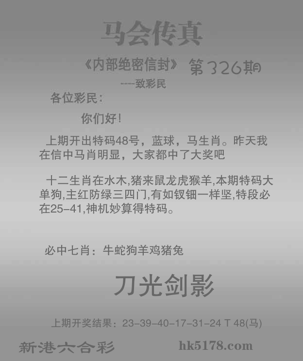 | 326期: ⑥肖 | 猴鸡蛇兔猪龙 | 马24中 |