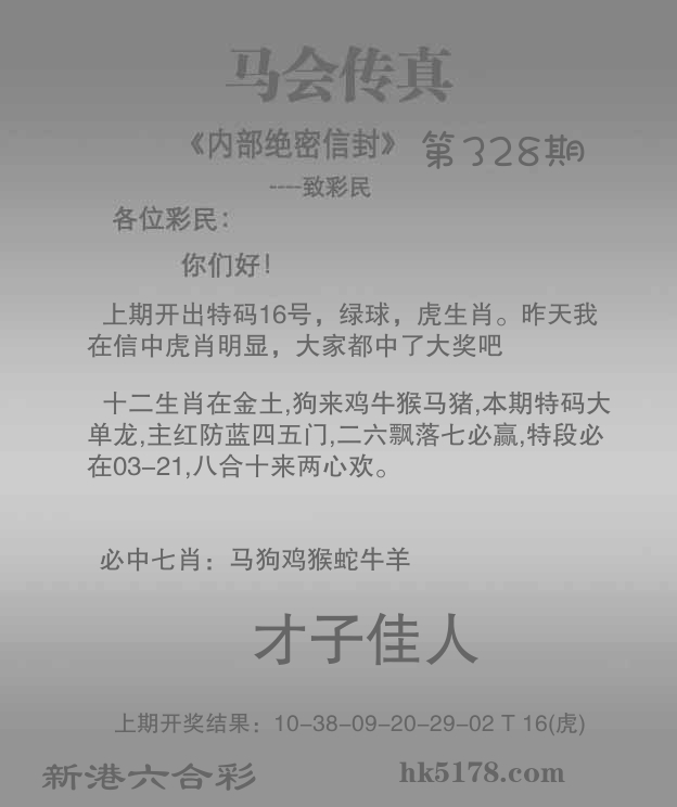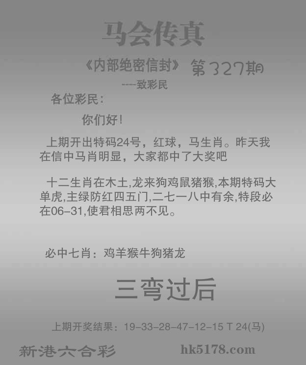 | 327期: ⑦肖 | 猪猴鼠狗鸡蛇虎 | 虎16中 |