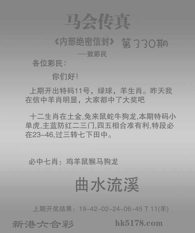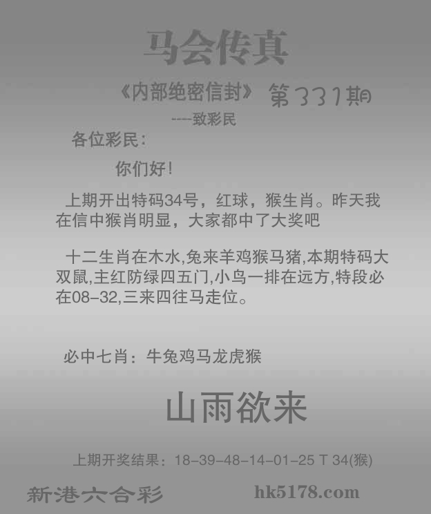 | 330期: ⑤肖 | 猴狗鼠猪虎 | 猴34中 |