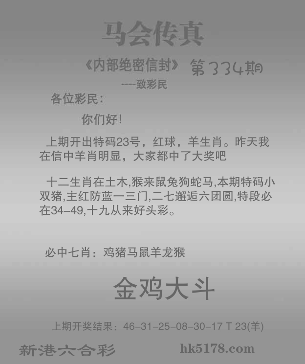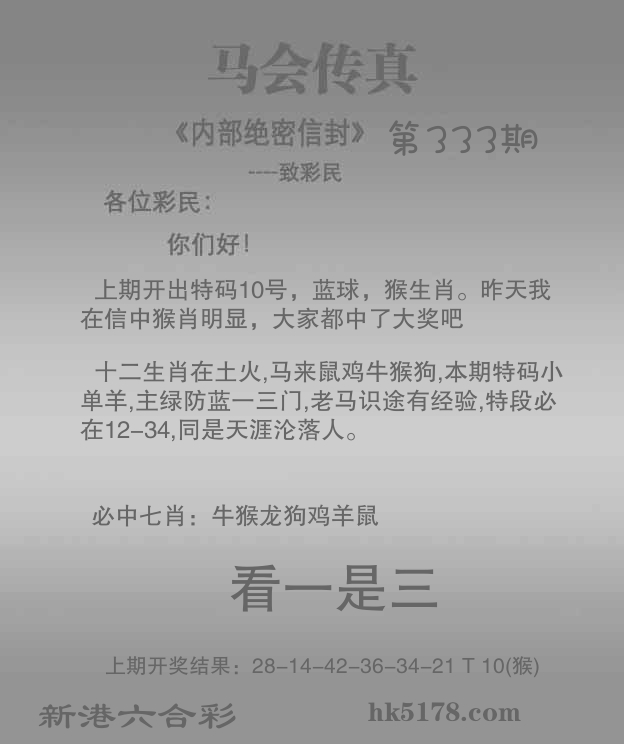 | 333期: ⑥肖 | 狗猴猪虎龙蛇 | 羊23中 |