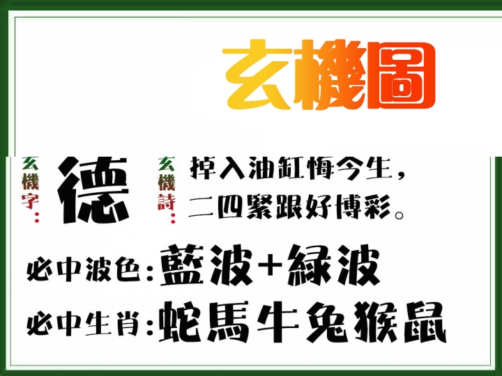 | 335期: ⑥肖 | 鸡狗猪鼠兔蛇 | ????中 |