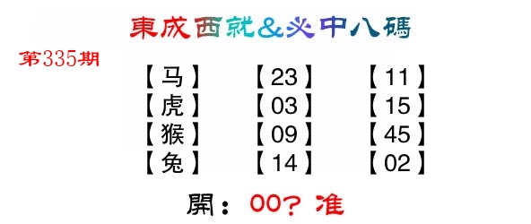 | 335期: ⑧肖 | 鸡狗猪鼠兔蛇猴龙 | ????中 |