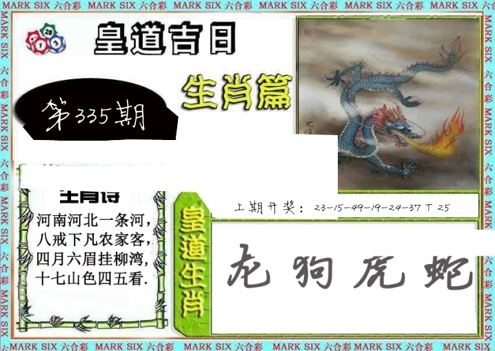 | 335期: ⑨肖 | 鸡狗猪鼠兔蛇猴龙马 | ????中 |