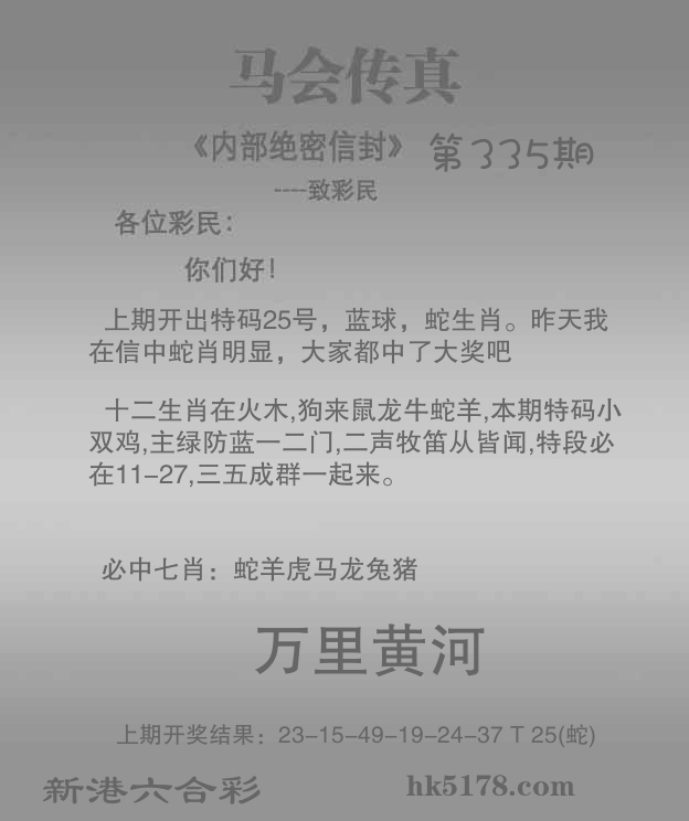 | 334期: ⑤肖 | 羊虎鸡蛇鼠 | 蛇25中 |