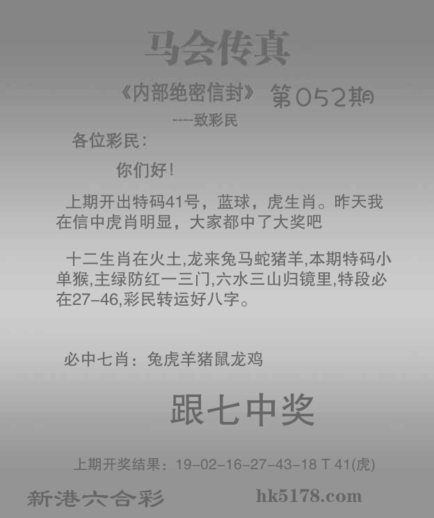 | 052期: ④肖 | 狗羊猴虎 | 猴23中 |