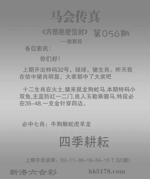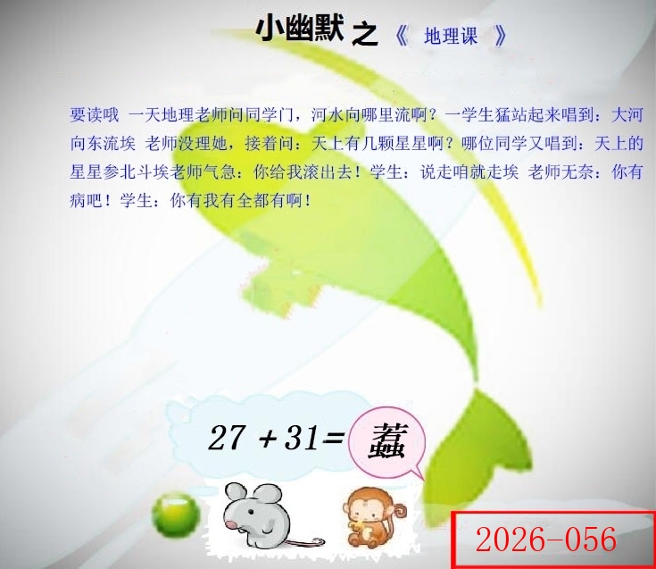 | 056期 | 猴 | 8尾 | 绿双 | 28-37 | 07鼠 |