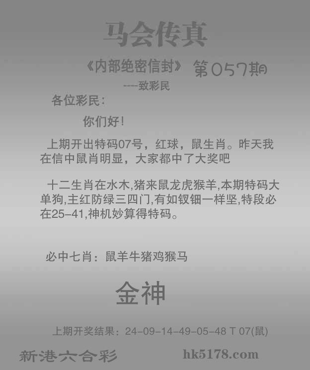 | 056期: ⑥肖 | 鸡马虎牛狗猪 | 鼠07中 |
