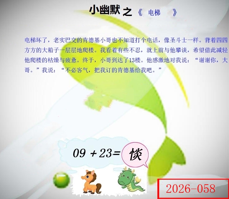 | 058期: ⑥肖 | 猪龙马鸡牛蛇 | 猴35中 |