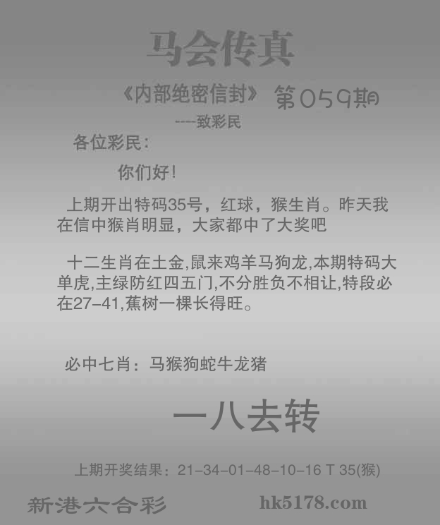 | 059期: ⑧肖 | 马牛龙羊鸡蛇虎猴 | 狗21中 |