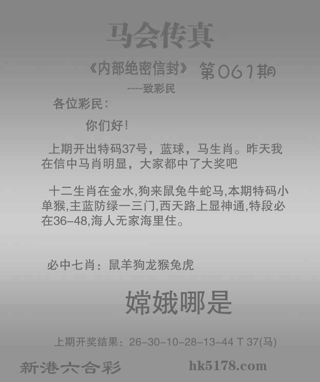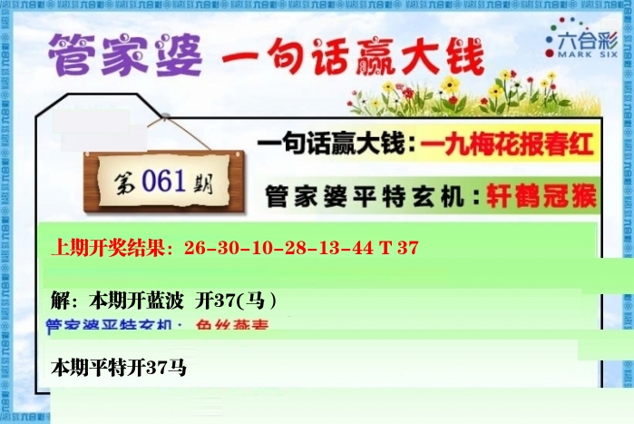 | 060期: ⑥肖 | 马猴鸡蛇猪虎 | 马37中 |