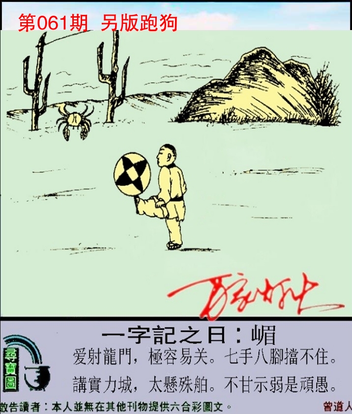 | 061期: ⑨肖 | 虎狗兔牛鸡鼠猴龙蛇 | ????中 |