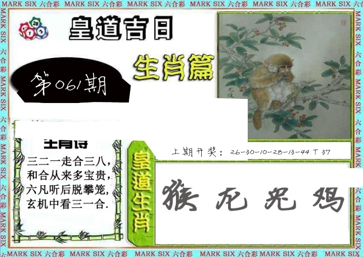| 061期: ⑦肖 | 虎狗兔牛鸡鼠猴 | ????中 |