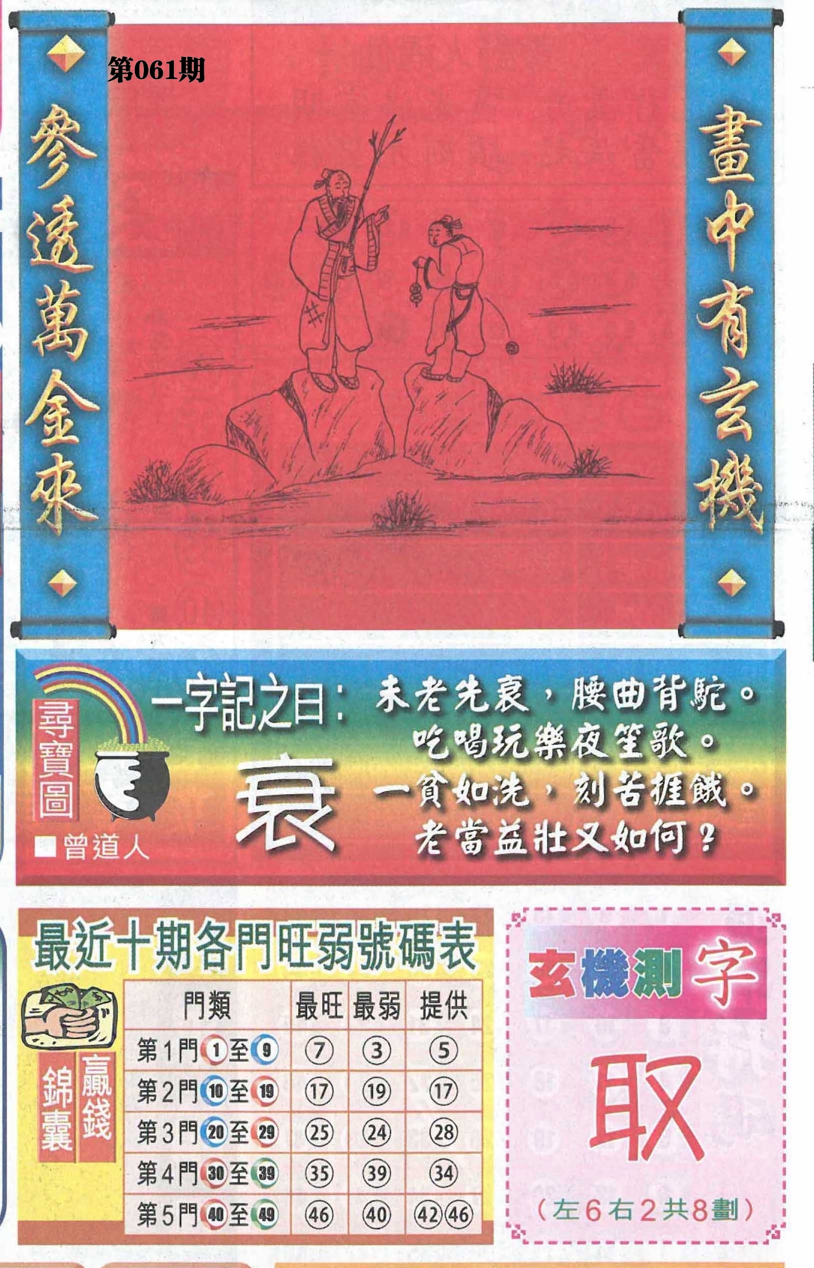 | 061期: ⑧肖 | 虎狗兔牛鸡鼠猴龙 | ????中 |